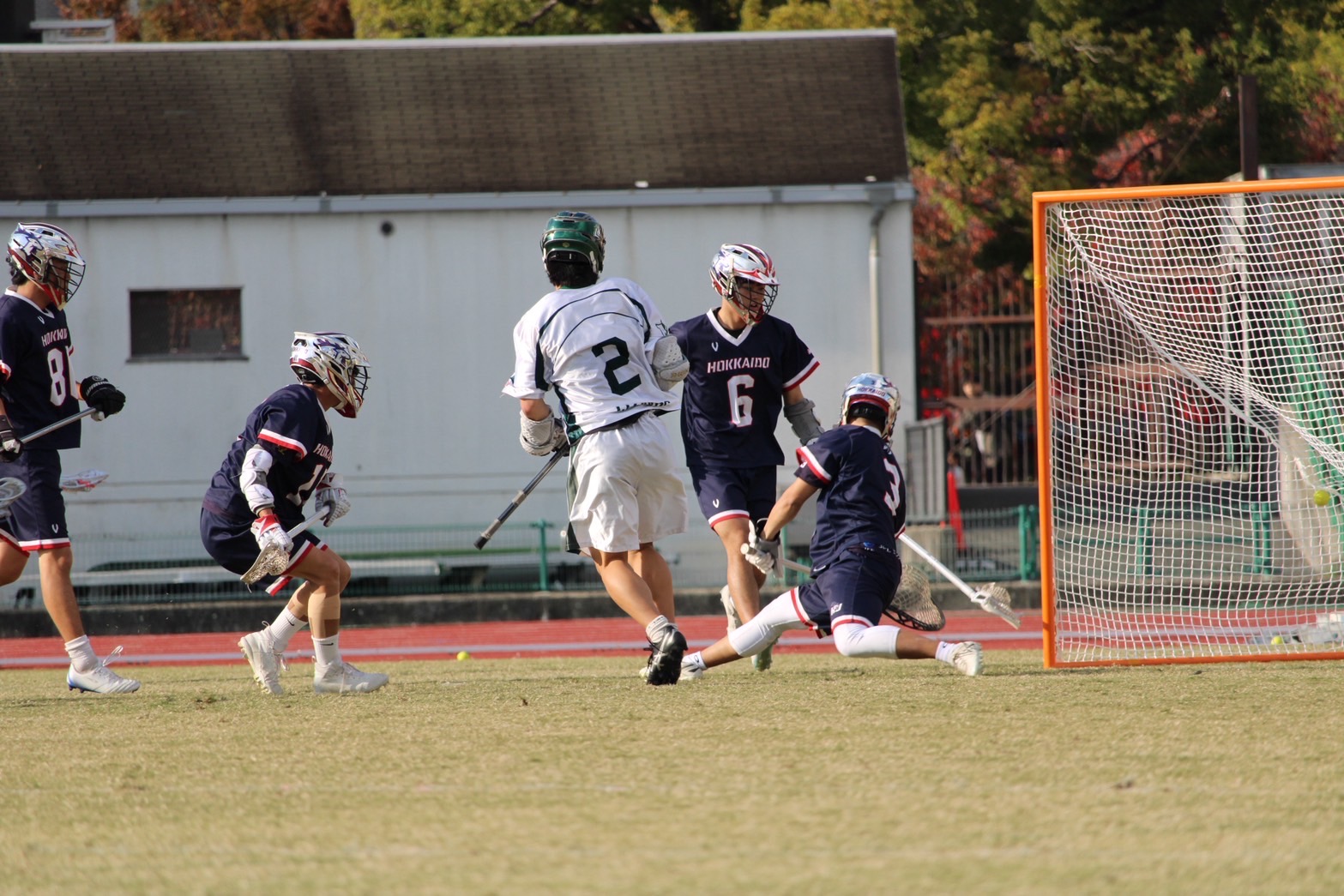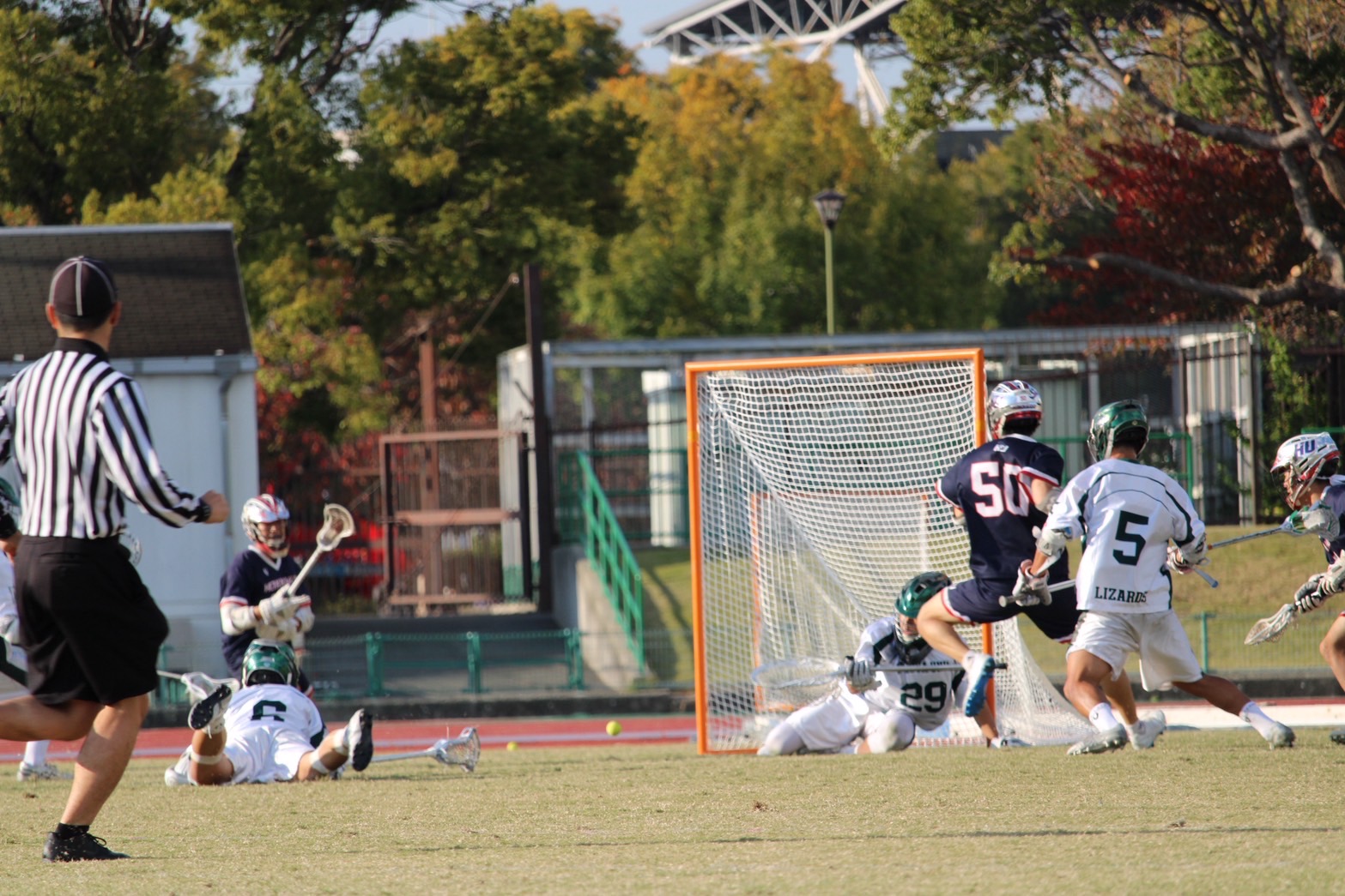 名大得点後相手のイリプロで名大OFから始まり、右上でボールを持った#3 こばがランシューで得点を決めました!