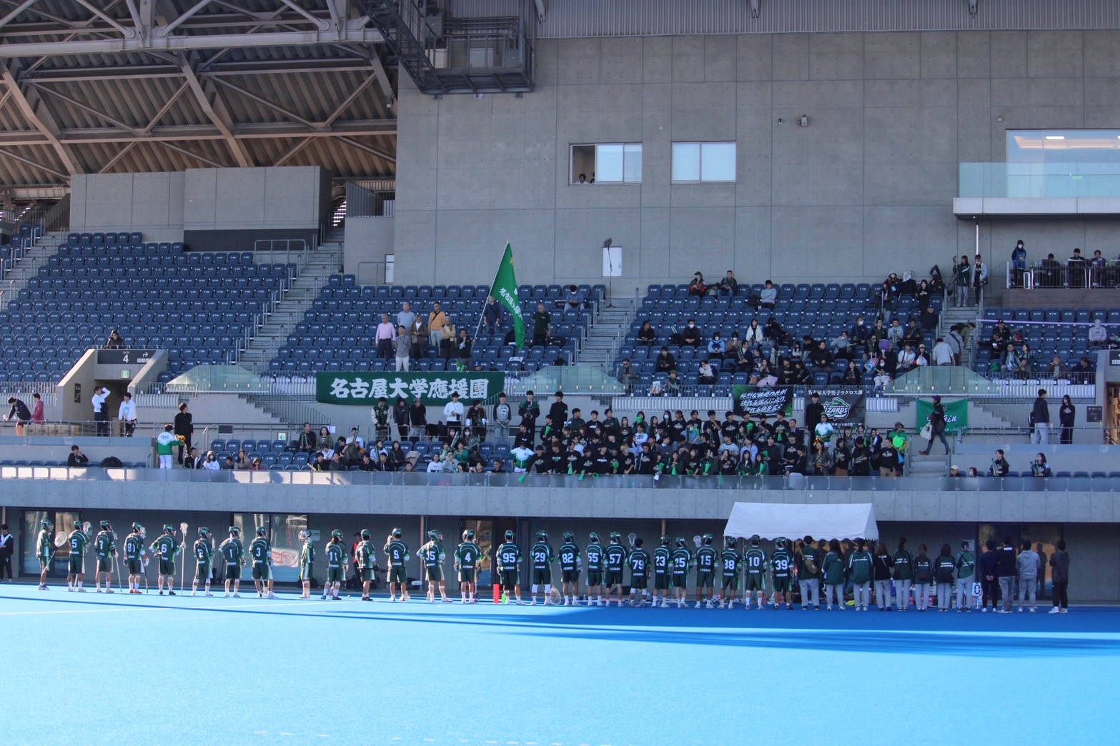 かなり緊迫した試合ですが、名大スタンドの応援がハーフ中も会場に響き渡り、まるでHOMEかのような雰囲気に包み込みます。