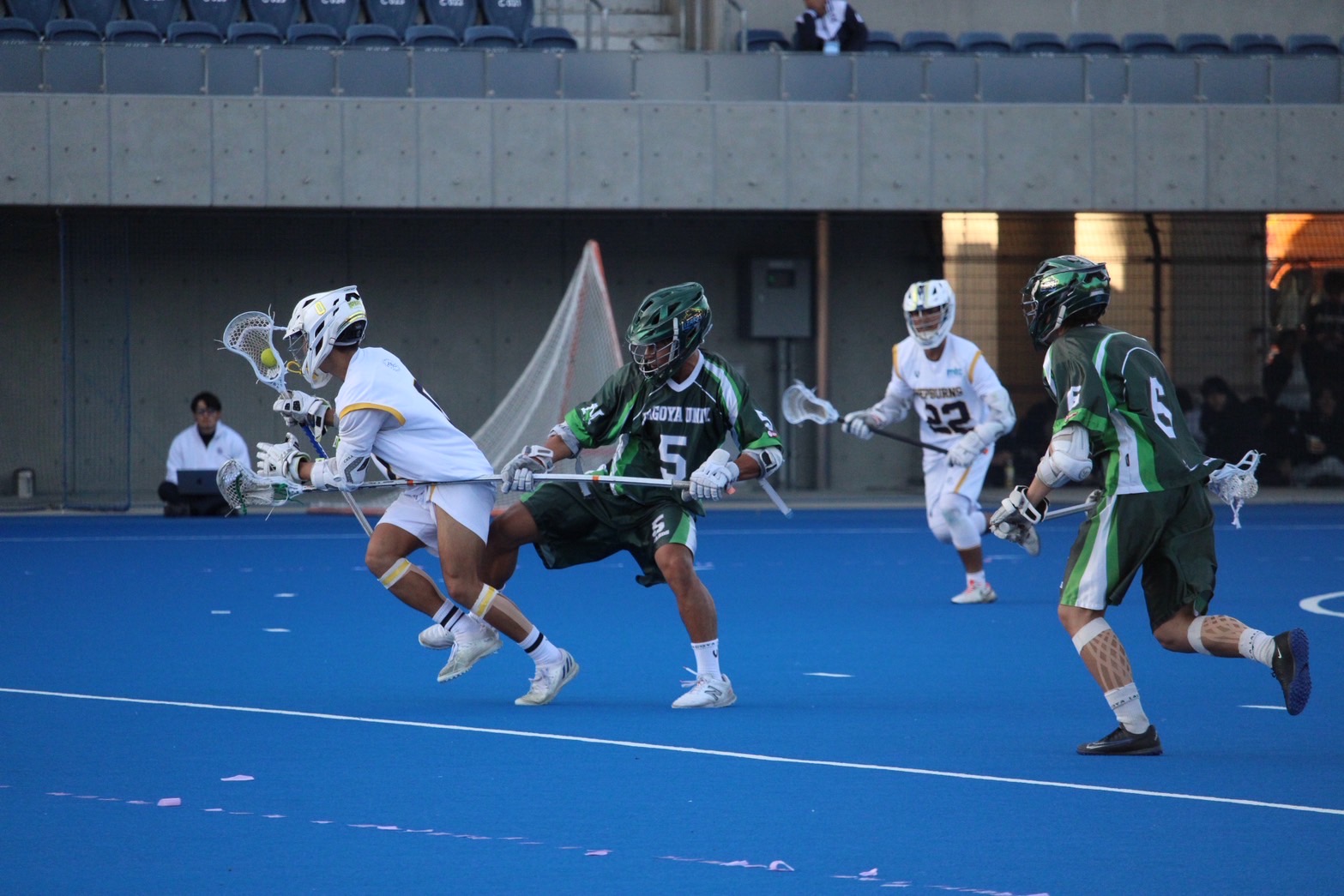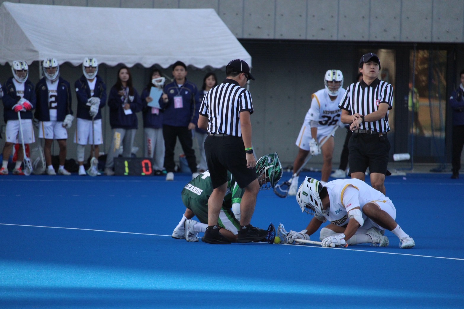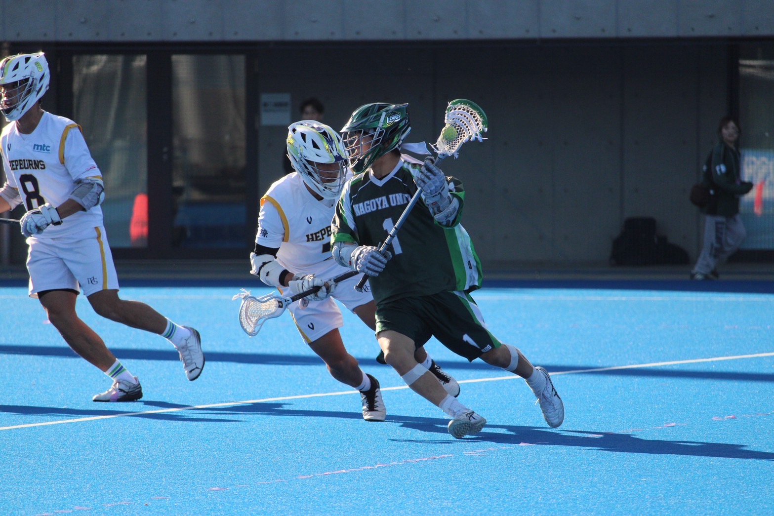その後名大OFでは #2 たすくがショットを打つも、相手ゴーリーのキャッチにより、すぐに相手OFが始まります。