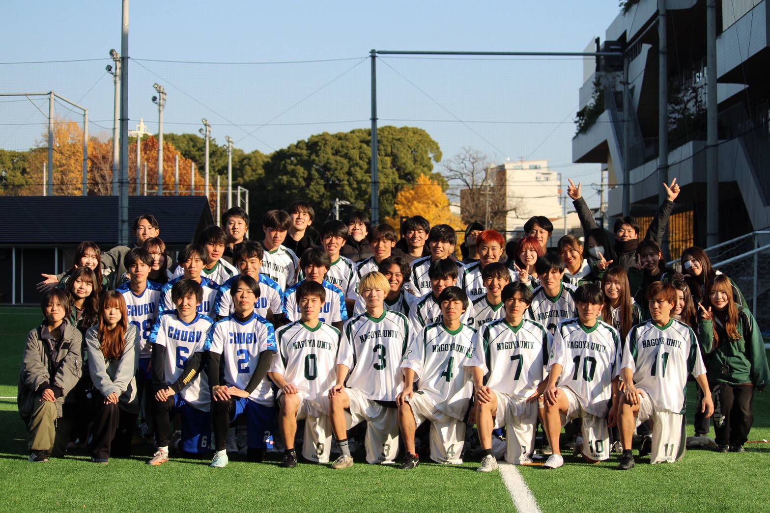 そして試合終了!1-0で名大の勝利です!みんなが1点のリードを守り通し掴み取った勝利はチームに安心と喜びをもたらしました。ナイスゲーム!