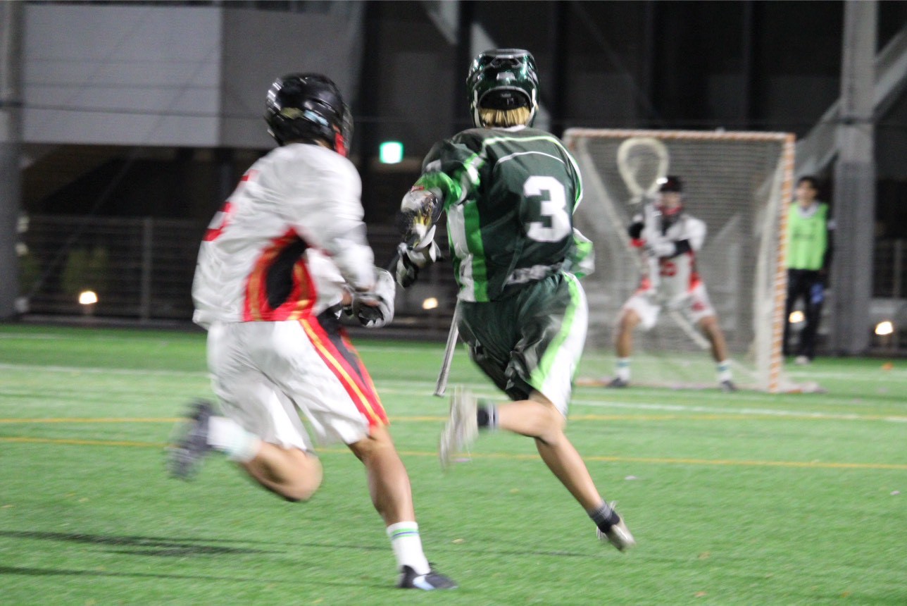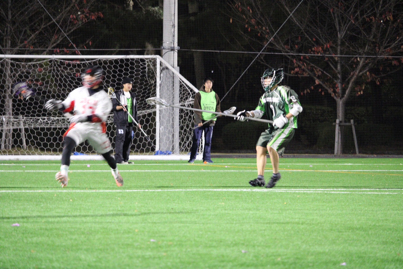 相手得点後のフェイスオフです。こうようが反応勝ちして瞬時にボールをゲットしていきます。そのまま名大OFに!!本当にこうようのフェイスオフはうますぎてびっくりしています。