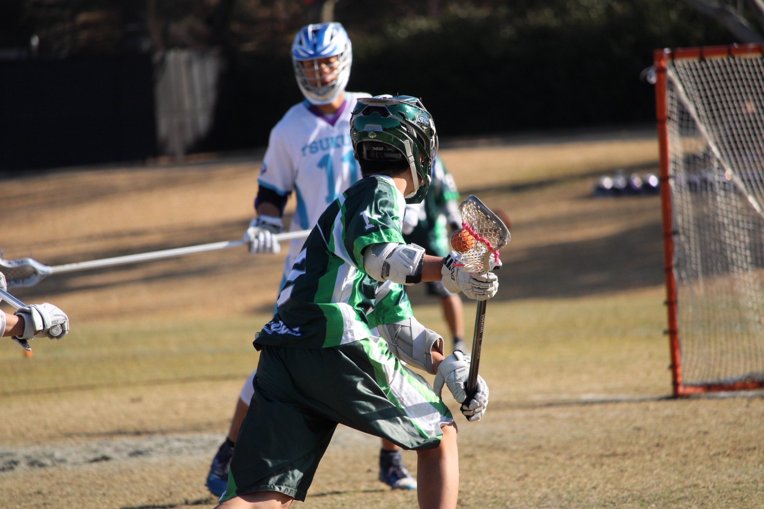 試合開始のフェイスオフを#54こうようが反応勝ちでポゼッションを取り、そのまま# 11 ほうじさんが得点を決めました!!